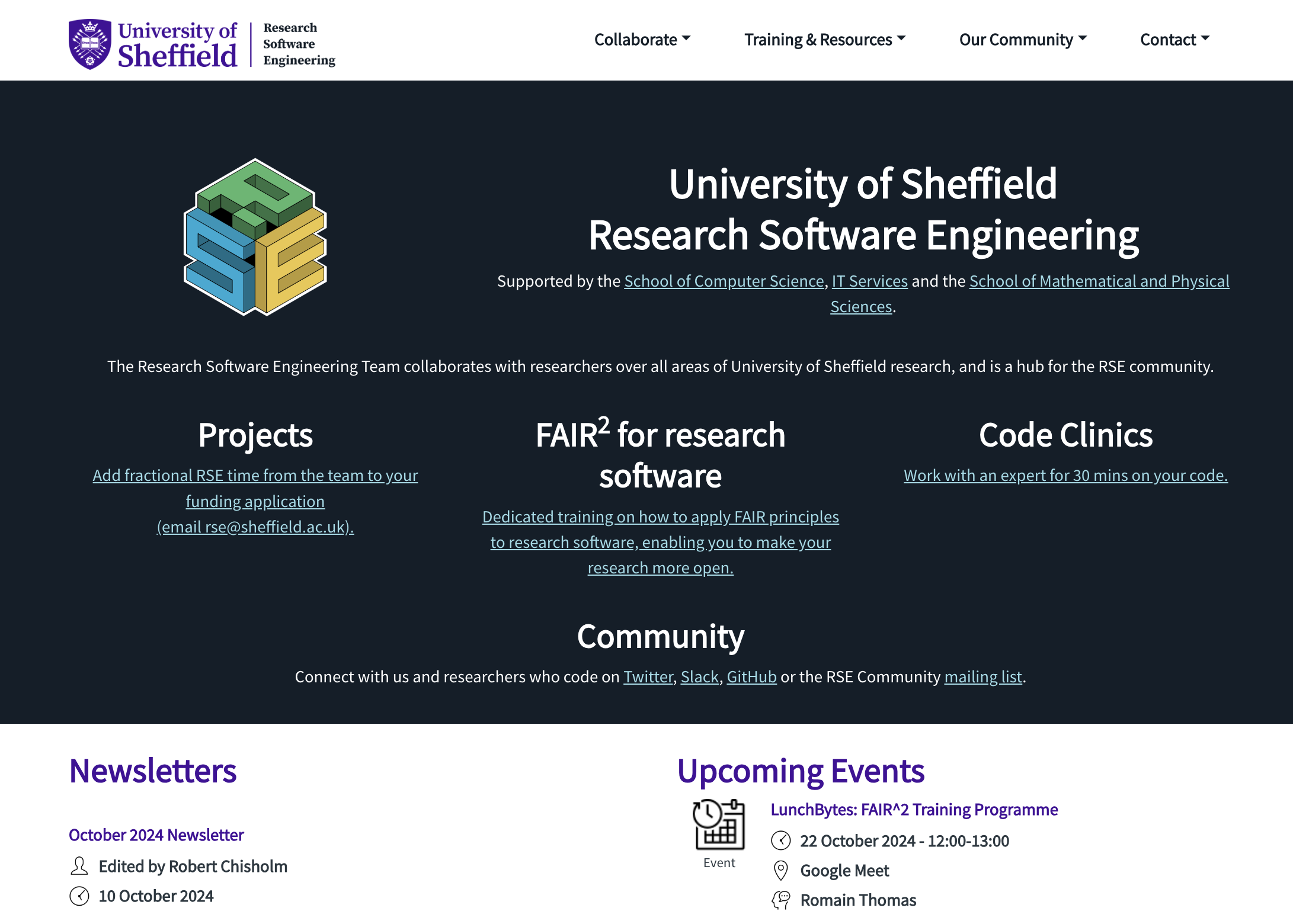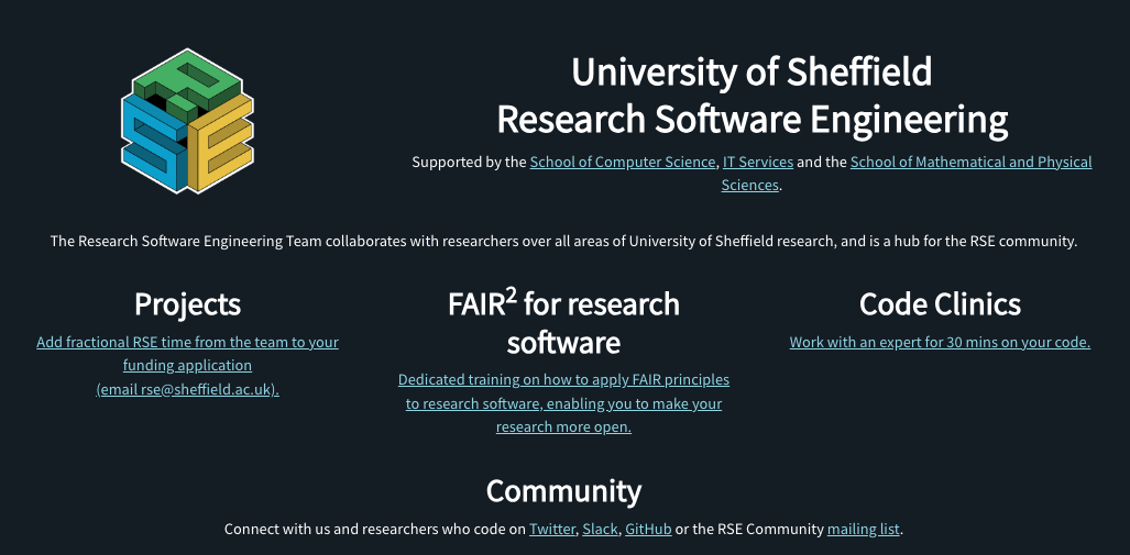 The Research Software Engineering team is composed of 13 members and collaborates with researchers across the University in building research software. Areas of expertise within the group include: general software development, code optimisation and performance, reproducibility, GPU computing and Deep Learning, High Performance Computing, training, etc…