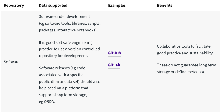 Numerous repositories give your content a DOI [Digital Object Identifier] It means it can be cited in publication and other communications in order to open up your research to others and invite collaboration, as well as ensuring a constant link to your code.
